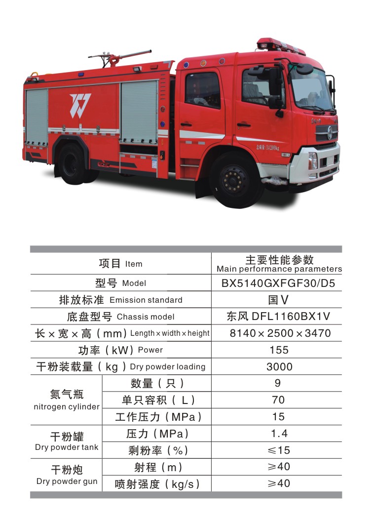 BX5140GXFGF30/D5 干粉消防車