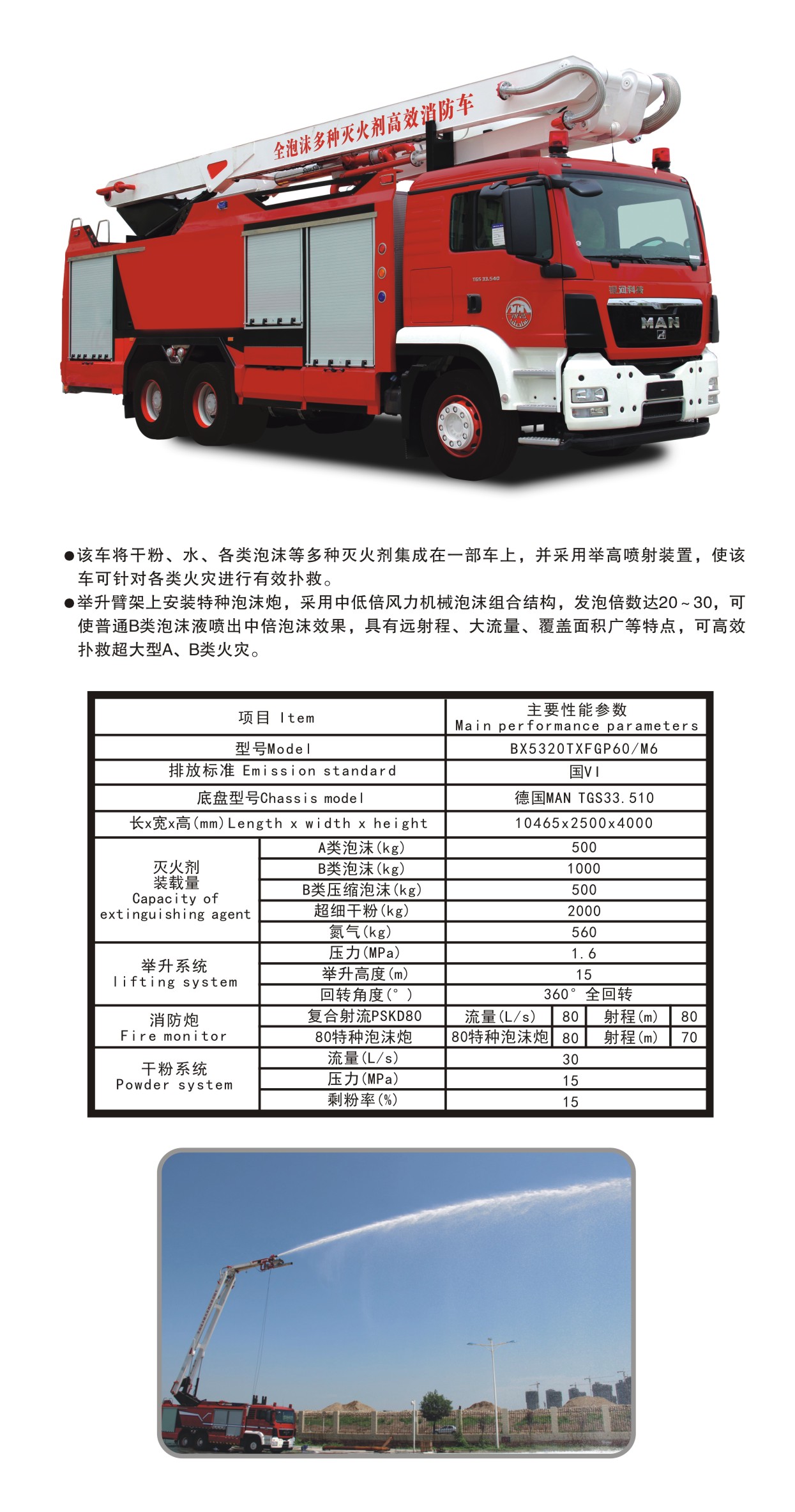 BX5320TXFGP60/M6全泡沫多種滅火劑舉高噴射消防車