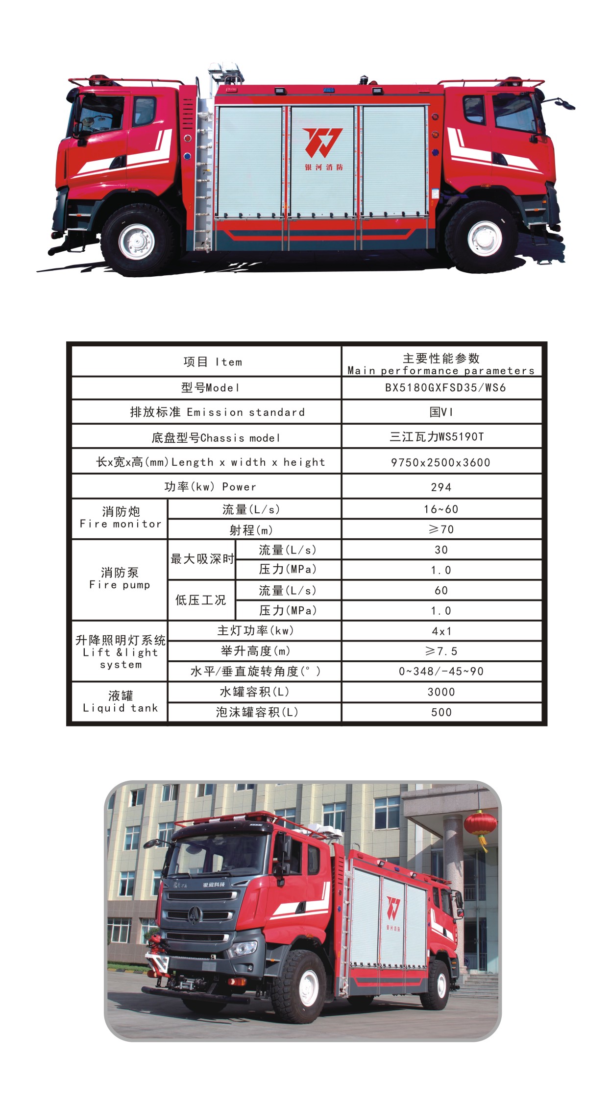BX5180GXFSD35/WS6雙向行駛隧道消防車