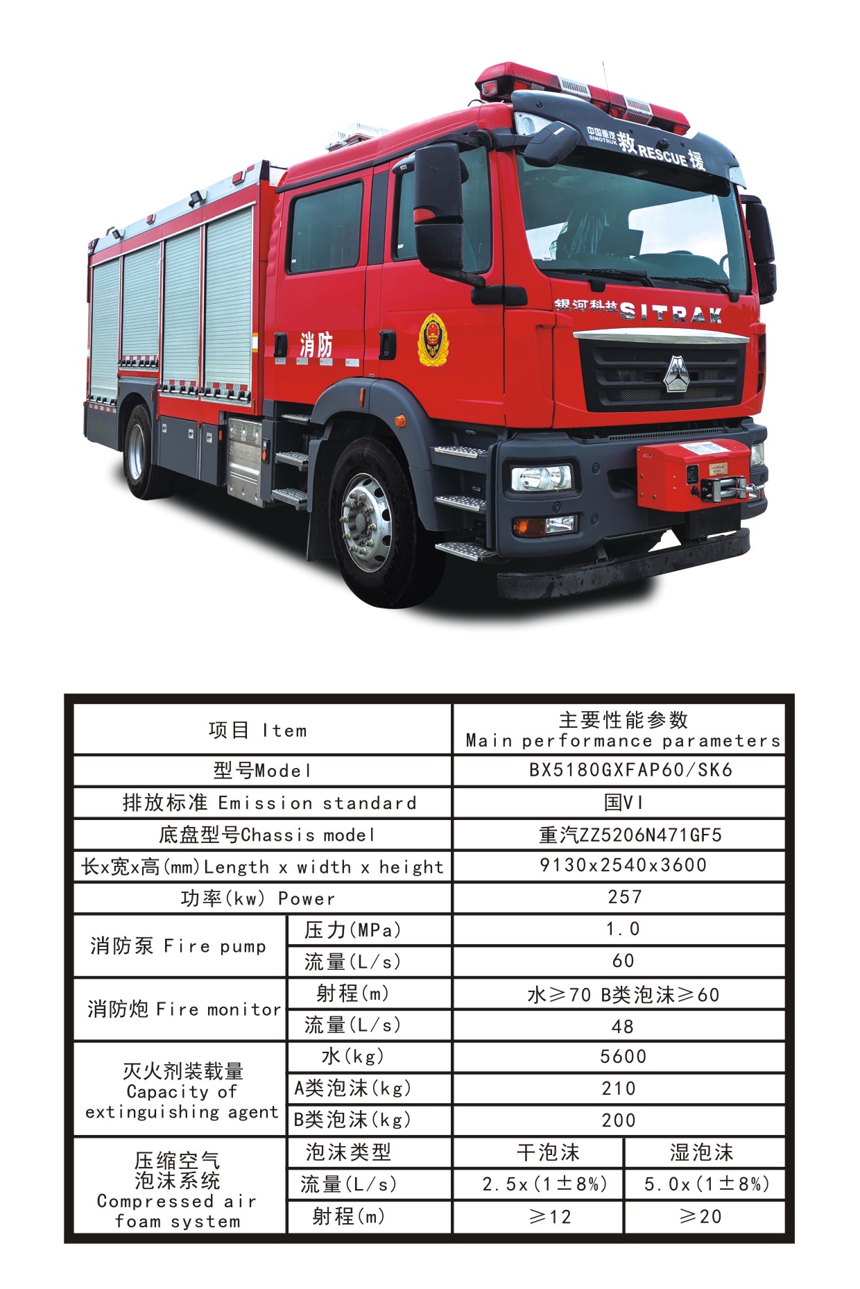 BX5180GXFAP60/SK6壓縮空氣泡沫消防車